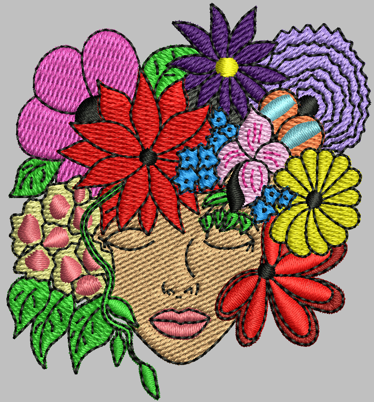 Floral Woman Face Embroidery Design Stitches: