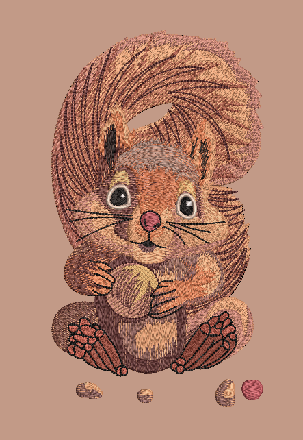 This is a beautifully detailed embroidery design of a cute squirrel holding a nut. The artwork features intricate shading and texture to give a realistic, hand-drawn effect. With a variety of thread colors, the design captures the charm and playfulness of a squirrel perfectly, making it ideal for kids’ apparel, nature-themed products, or fun embroidery projects.
